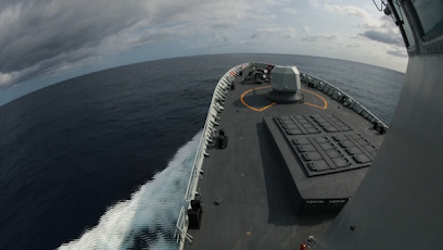 “防空武器系统抗击来袭导弹,反舰导弹打击XXX批目标!”各战位迅速进入战斗状态,舰艇随即快速调整航向航速,实施精准打击,成功击毁目标。