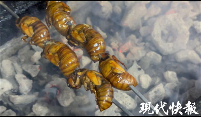 “烤金蝉销量很好,尤其小孩子,挺爱吃的。”烧烤师傅说,各类特色菜品占据了销量的半壁江山,很受欢迎。