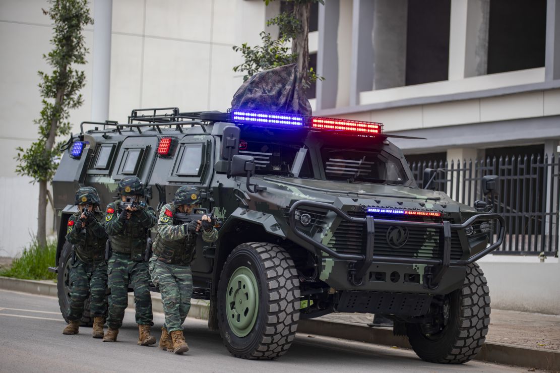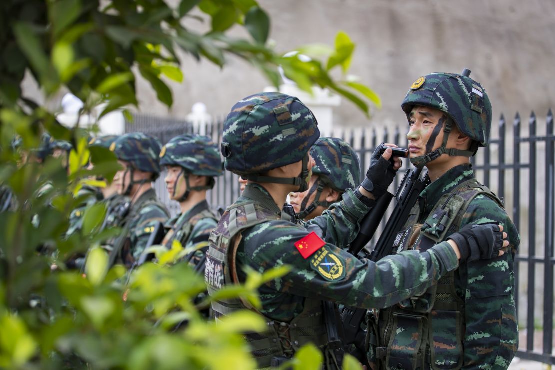 “侦察组报告,前方一百米处建筑工地为‘暴恐分子’藏匿点,‘暴恐分子’挟持‘人质’藏匿于二楼右侧房间内,完毕!各小队注意,当前情况已查明,我决心采取周边封控,多点突入战法,处置此次事件。”