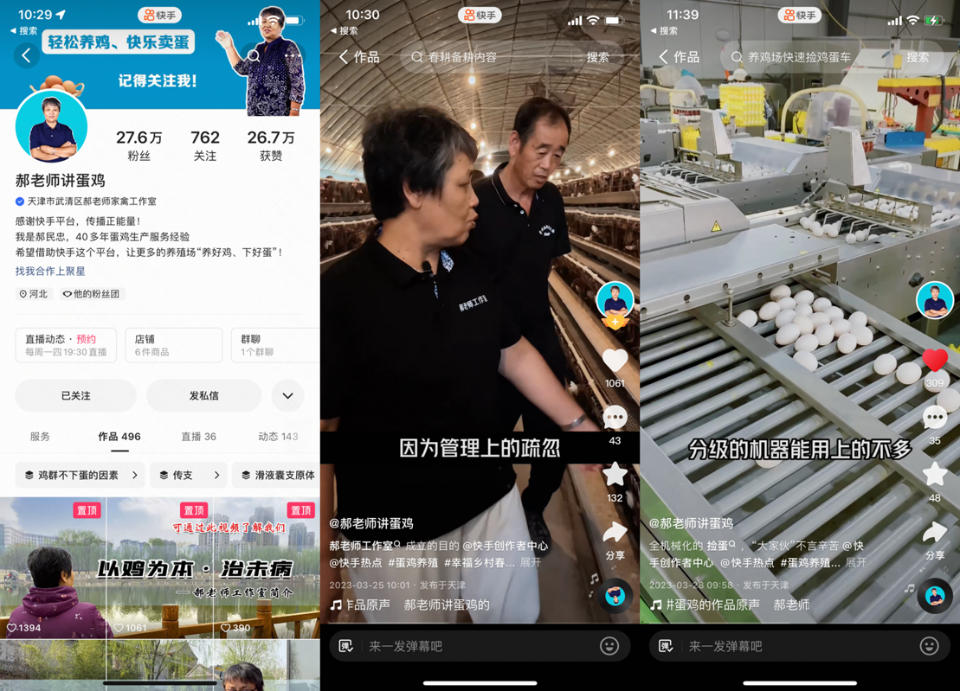 最初,郝民忠和学生都不懂运营,但她的专业知识引起了老铁的兴趣。养殖户遇到问题,她会总结共性,把解决方案录制成作品;没有问题时,她就沿着季节变化、生产规律预测管理漏洞,发布技术讲解视频。2个多月后,“郝老师讲蛋鸡”在快手积累了3万粉丝,并开启了第一次直播。