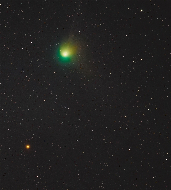 这颗罕见的绿色彗星,彗核直径约1.6千米,彗尾绵延数百万千米,但在照片里,却只有小小一点。这团难得一见的绿光,照出了生命的渺小和时间的深邃。