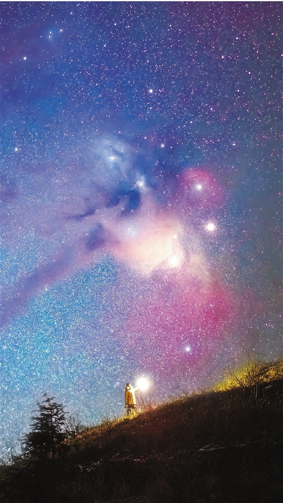 “拍星星不是直接拿起相机就能拍到的。”麻恩瑞说,它需要借助各种专业的软件和器材。比如,用赤道仪抵消拍摄时地球自转的影响,用天文专用软件StarWalk确定星星的精准位置,后期还要用堆栈降噪法让照片展示出肉眼无法捕获的细节……