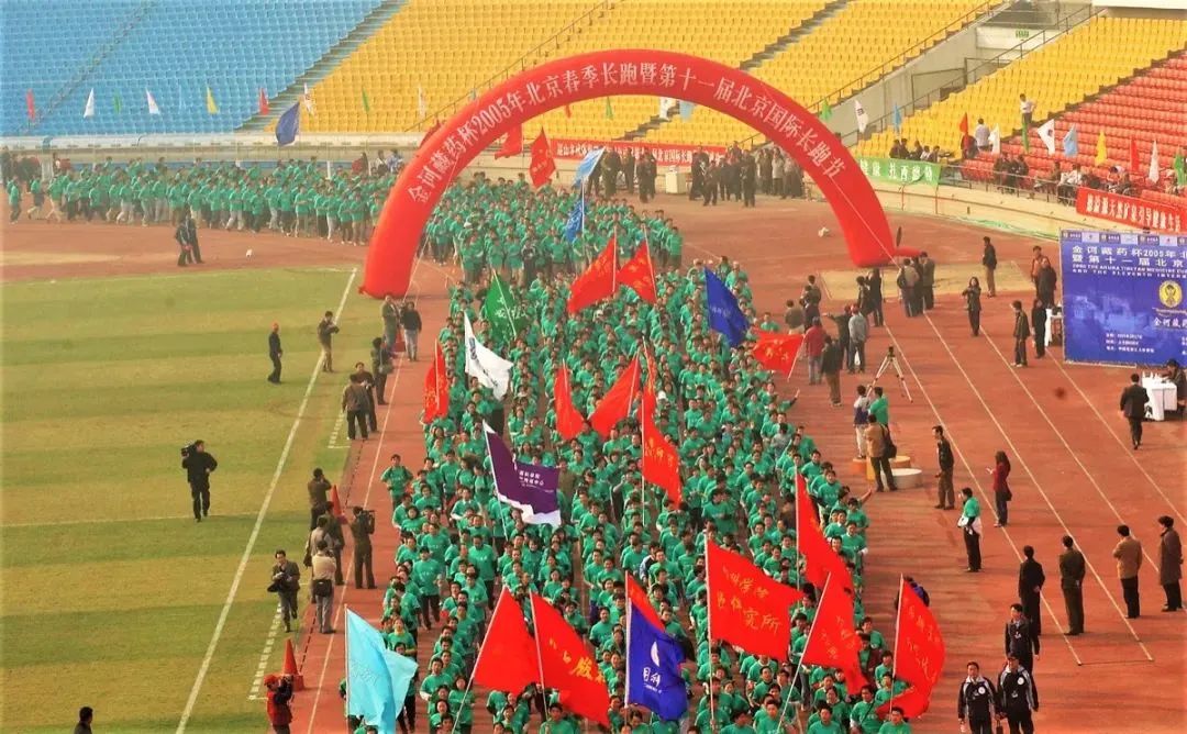 ↑2005年3月27日,第十一届北京国际长跑节在工体鸣枪开跑,吸引上万名运动员参加。北京国际长跑节起源于1956年,是中国历史最悠久的群众性路跑赛事。工人日报—中工网记者许之丰摄
