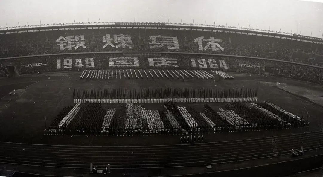 ↑1964年10月,北京工人体育运动大会入场式在工人体育场举行。工人日报—中工网记者蔡壮田摄