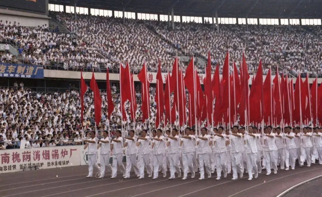 ↑1985年9月7日,第二届工人运动会入场式在北京工人体育场举行。工人日报—中工网记者吴启华摄