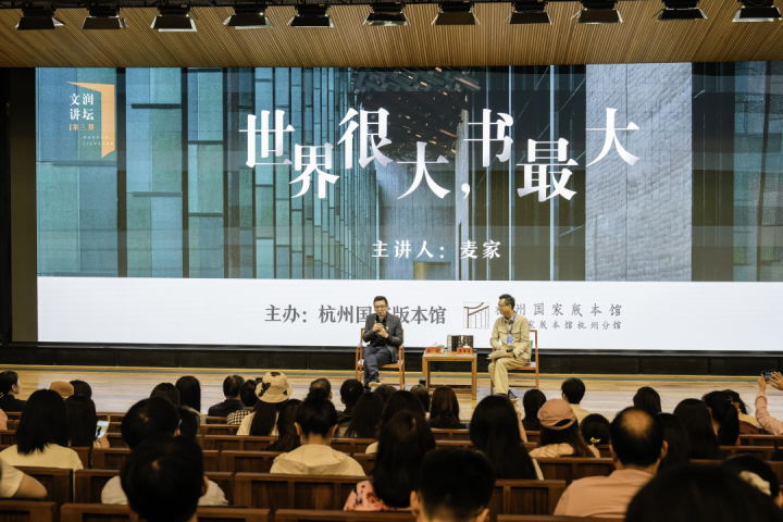 4月16日,距离世界读书日还有一周,杭州国家版本馆“文润讲坛”第三期如约而至。著名作家、茅盾文学奖获得者、中国作家协会副主席、全国人大代表麦家作为主讲人,以亲身经历,向在场600余名读者阐述着他理解中的“世界很大,读书最大”。