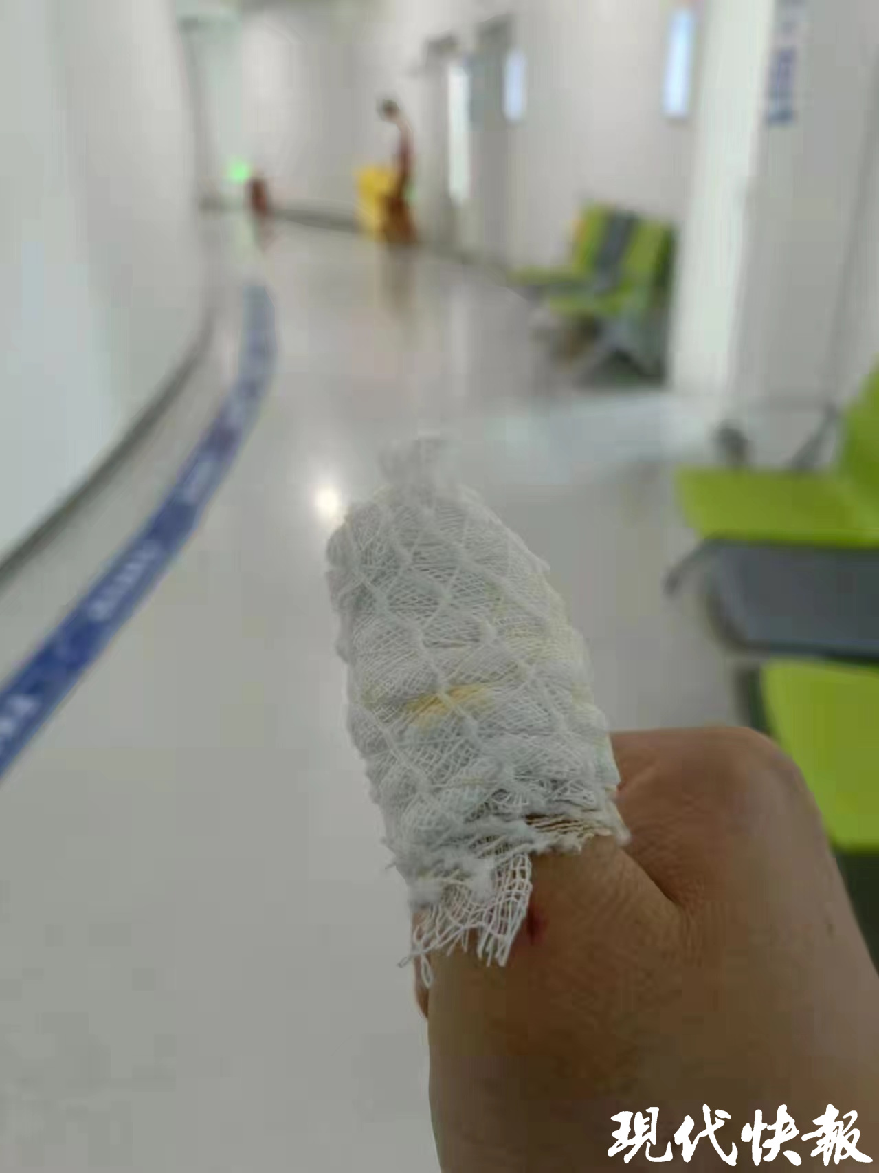 △辅警钱坤在掰玻璃时划伤了手指通讯员供图