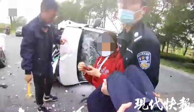 4月13日15时许,在扬州市宝应县画川路与光明路交叉口,发生一起交通事故,一辆轿车在事故中侧翻,车门因为撞击问题无法打开,驾驶员被困在车内。过路的司机和群众一边拨打120,一边主动参与到救援当中。