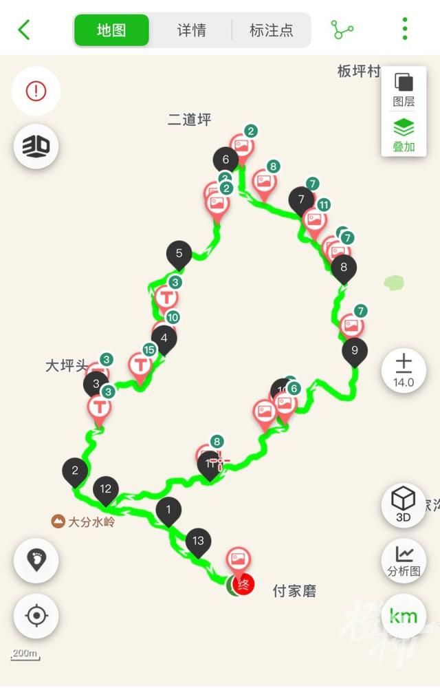 “驴友”小爱22日上山前,在徒步登山APP上下载好的导航轨迹