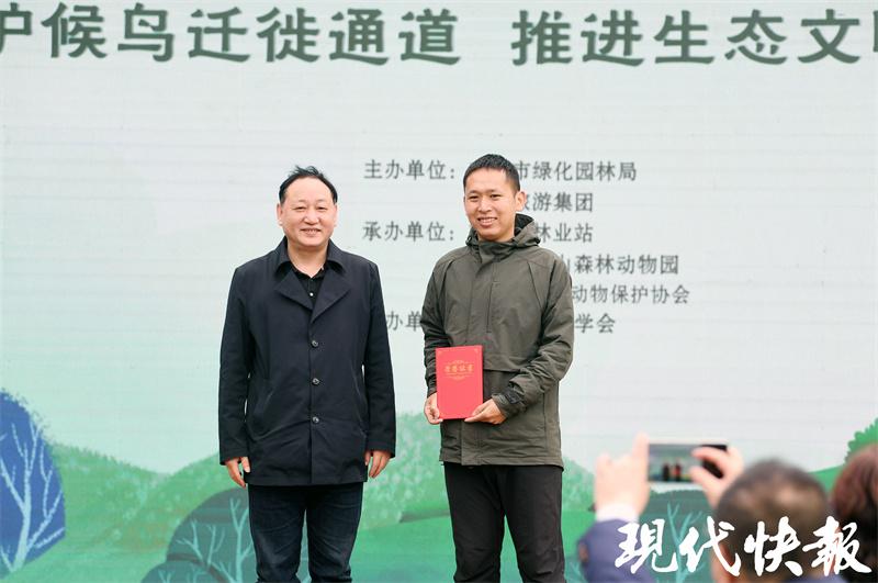 你知道南京庞大的鸟家族有多少成员吗?24小时能在南京观测到多少种鸟?4月24日,2023年南京市爱鸟周活动在南京红山森林动物园举办启动仪式。活动现场,震旦杯南京观鸟大赛、震旦杯微视频大赛举行了颁奖仪式,过境南京的鳞头树莺被评为至尊鸟种,还有候鸟精灵科普展、公益赏鸟、黑鸢放飞等活动,精彩纷呈,干货满满。
