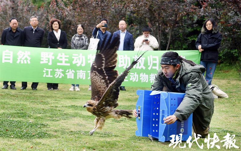 活动当天,红山森林动物园救助中心救助的第五只黑鸢背上GPS小书包,重返蓝天。只见蓝色的救助箱一打开,羽毛油亮的黑鸢即刻展翅高飞,很快消失在天空之中。