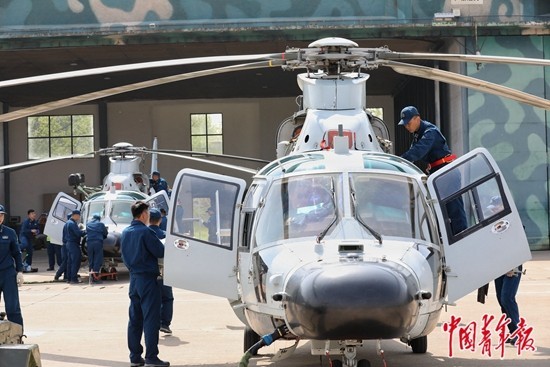 4月20日,山东青岛,海军节前夕,北部战区海军舰载航空兵某团开展飞行训练。图为飞行训练前,机务官兵对战机进行检查。