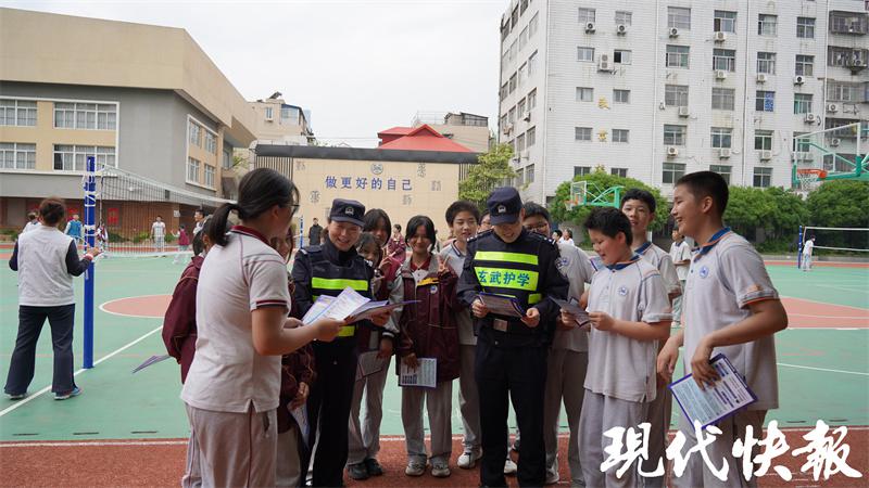 △玄武分局梅园新村派出所民警正在南京市玄武高级中学初中部向学生发放反诈试卷