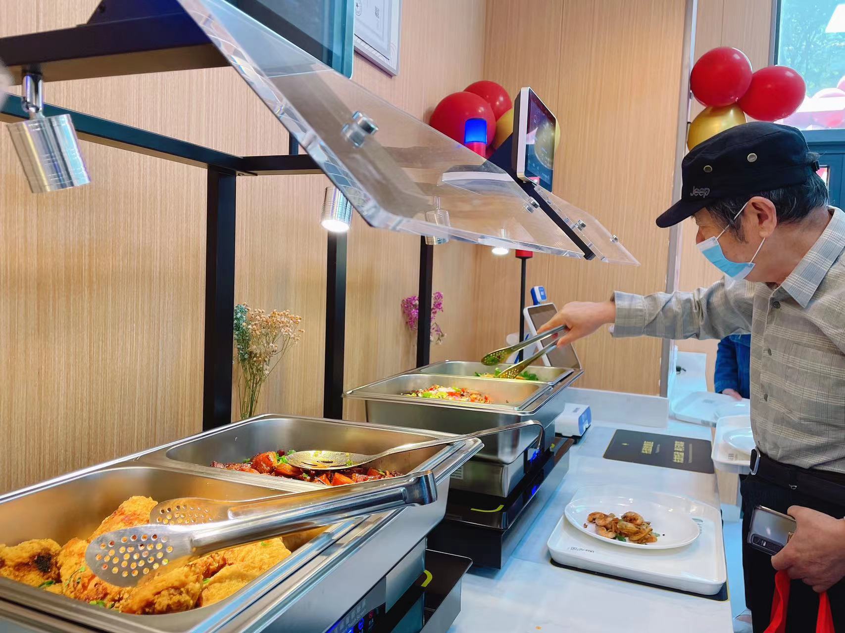 就餐结构智能化。餐厅采取“智能称重”就餐模式,居民只需挑选自己喜爱的菜品放在餐盘内,称重区系统便可自动结算出就餐金额。餐厅运用新时代“互联网+”技术,支持刷脸、刷卡、扫码等多种消费模式,让居民可以方便快捷就餐。就餐后系统会提供个人营养分析饮食报告,以便居民更加注重饮食搭配,完善营养结构。