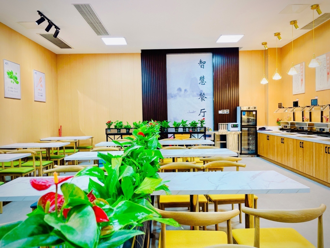 餐厅氛围现代化。“智慧餐厅”的设计到落地运营,紧贴保障民生,整体风格以“简约大气、便捷智能”为主。餐厅面积约70平米,配备7台自助称重一体机、13张就餐桌椅,可容纳50位居民现场就餐。餐厅内公布一周菜品,每天提供14个菜品供居民挑选,让居民吃得安心、吃得舒心。