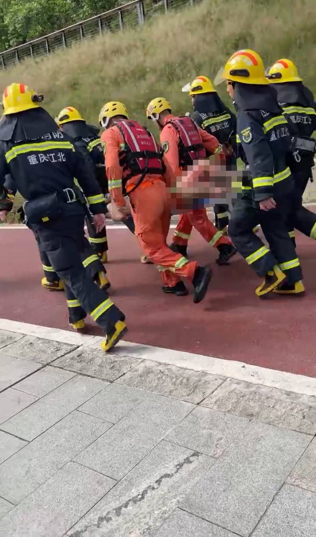 现场视频还显示,有人员在事故中受伤,已被消防员救出。