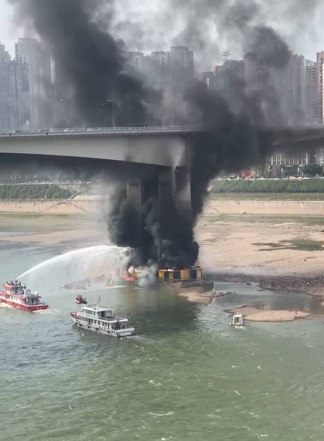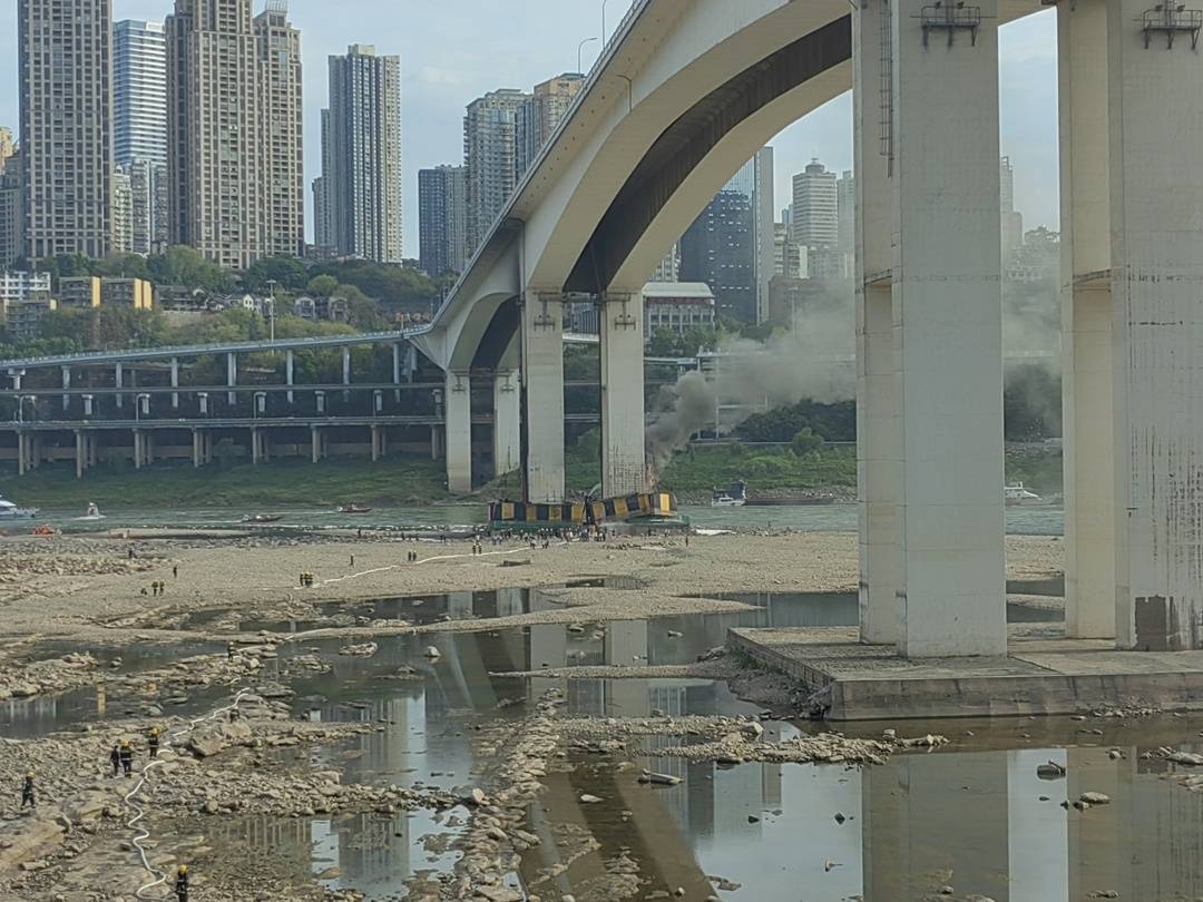 重庆嘉陵江黄花园大桥桥墩大火已基本被扑灭。