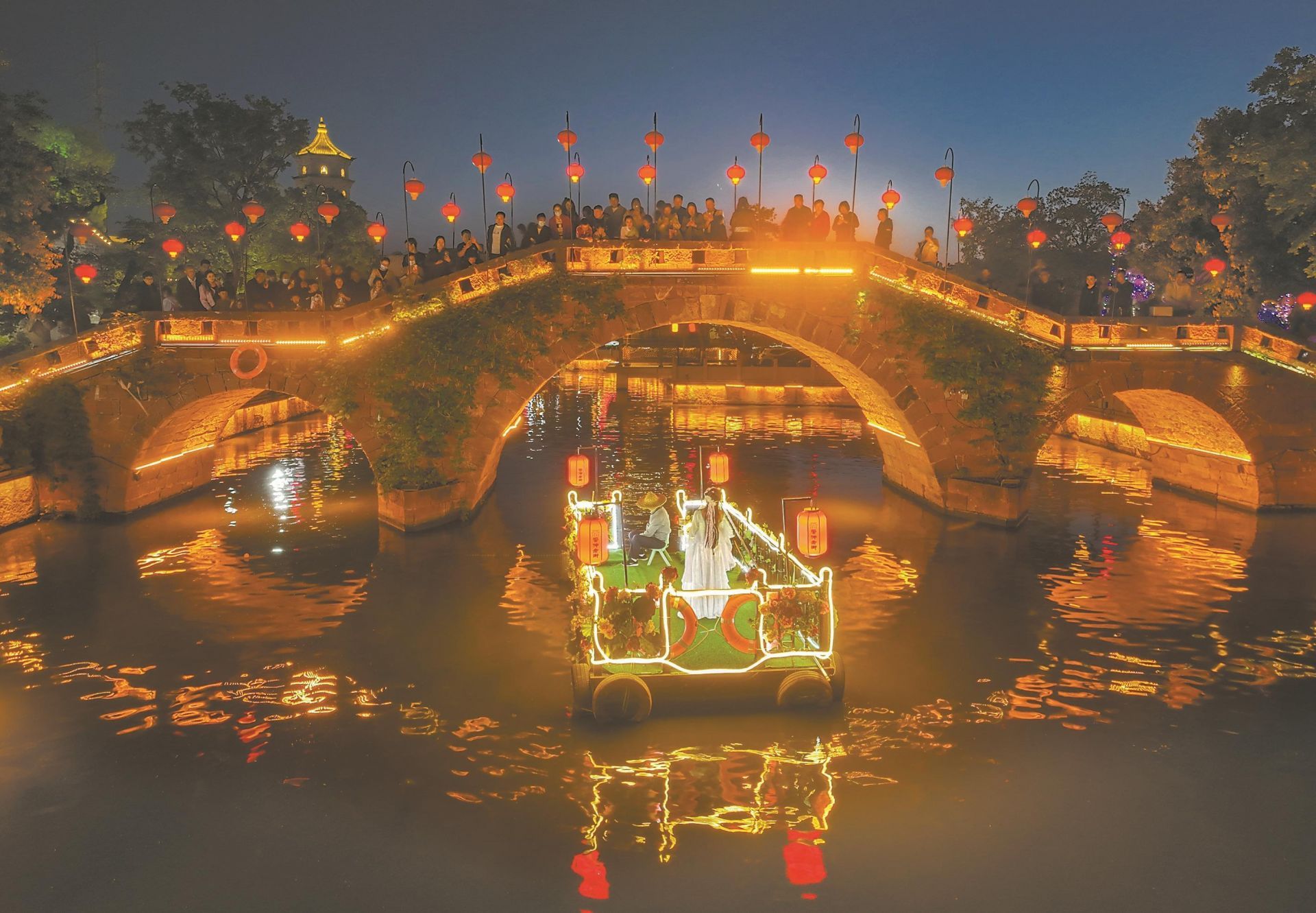 “逛水镇、看夜景,我体会到了江南水乡的韵味。”在微信朋友圈领略了犁桥水镇夜景后,趁着假期,游客张云生特地从外地来到水镇“打卡”,并直言“不虚此行”。