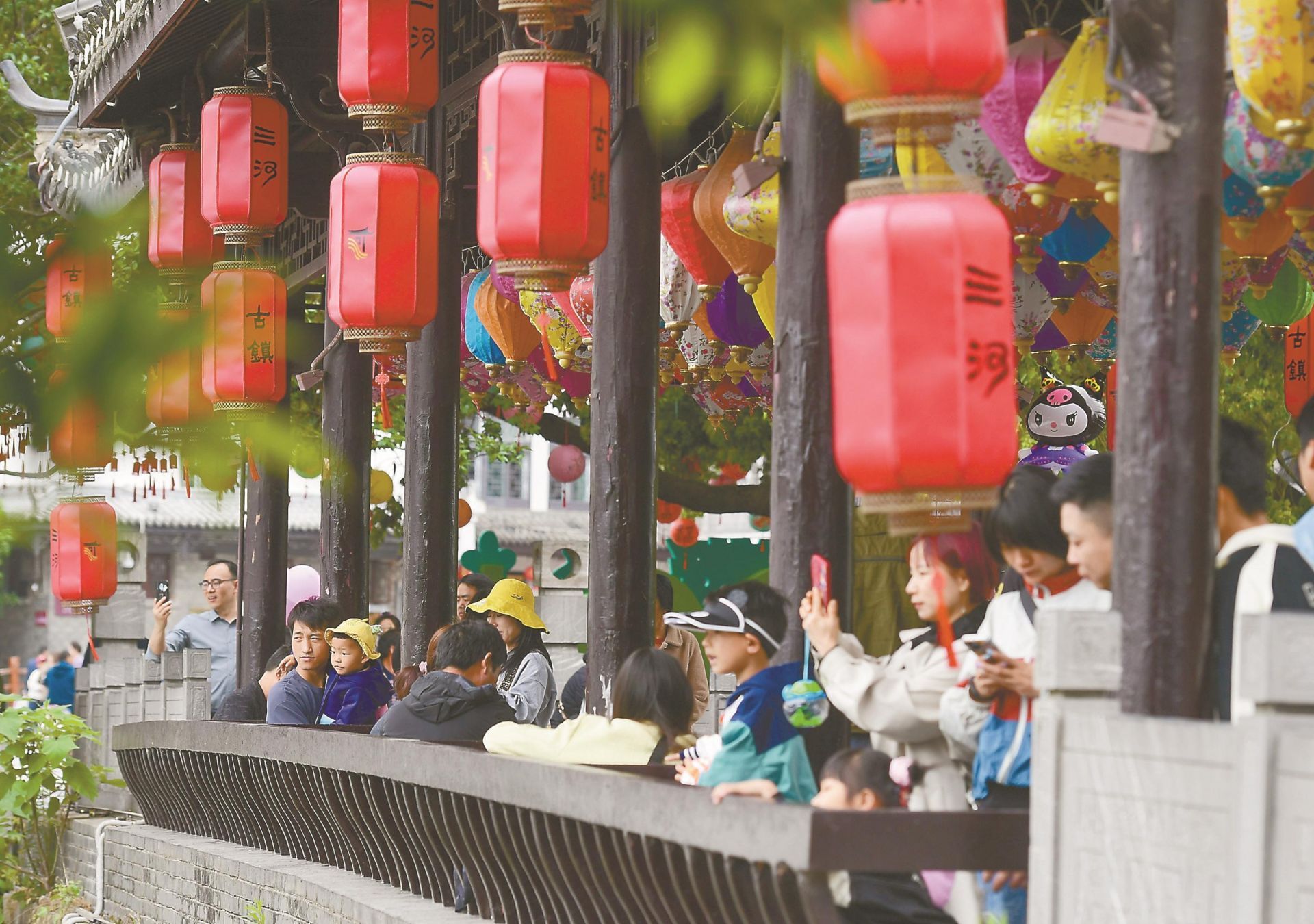 4月29日,游客在肥西县三河古镇景区游玩。当日,肥西县三河古镇吸引了众多游人前来观光游览,享受假期美好时光。本报通讯员徐勇摄