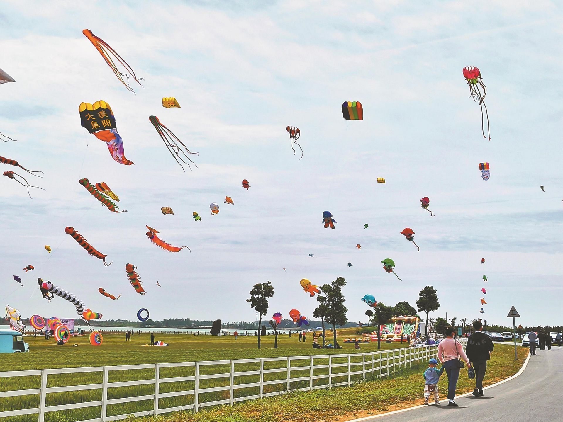 4月29日,在肥东县梁园镇护城社区,市民们正乐享风筝带来的乐趣。当天,肥东县梁园镇护城社区举办乡村风筝节,吸引众多市民前来观赏体验,拉动城乡消费,带热乡村旅游经济。本报通讯员许庆勇摄