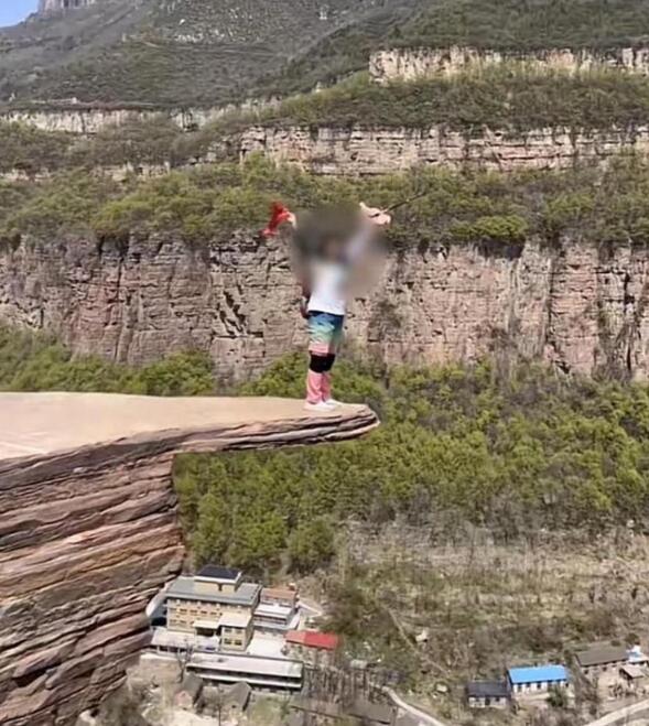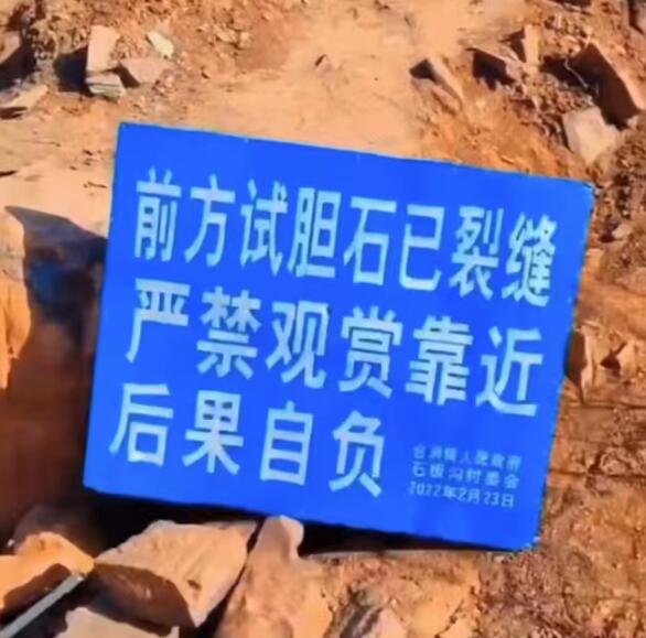 同样引发关注的还有河南安阳一块悬崖上的“试胆石”。这是一块伸出悬崖、已出现裂痕的石头。虽然当地政府已在附近设置安全提示牌,但仍有不少游客站在上面打卡拍照。因担心游客出现意外,4月中旬当地已将其砸掉,引发热议。