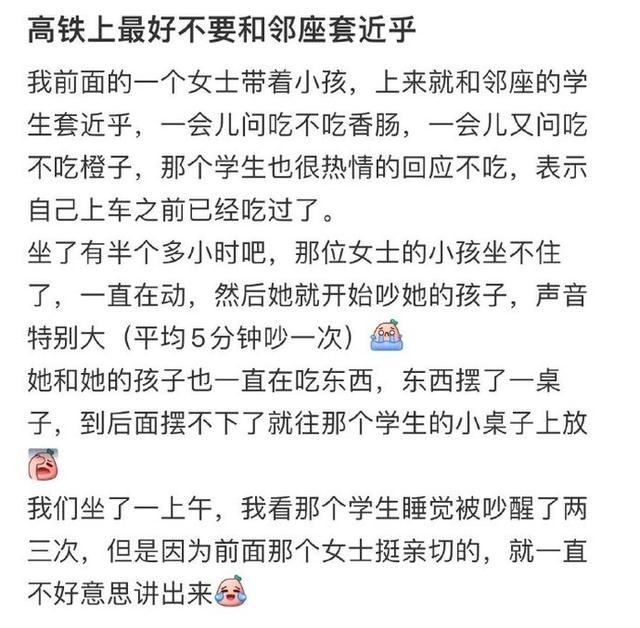 很多网友表示,遇到过邻座主动和自己聊天套近乎,搞得气氛很熟,这样对方再做出一些令人反感的行为,或者提出一些过分的要求,自己也不好意思拒绝。