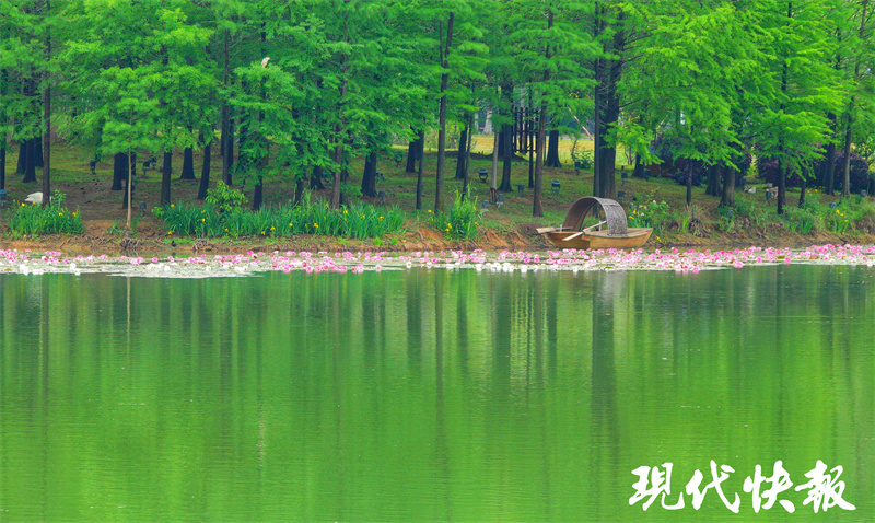 绿意葱茏的5月,南京版“莫奈花园”如期上线。钟山风景区燕雀湖中睡莲初开,水杉新绿,画风清丽,美如油画。