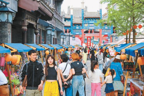 随着旅游市场的恢复,大量游客的到来带火了传统商街。市商务局监测数据显示,今年3月以来,王府井商圈的客流量同比增长近40%,前门大栅栏商圈客流量更是大增近90%。