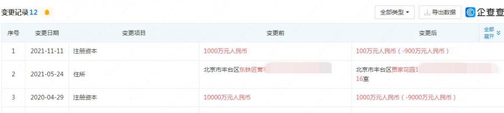 ▲经过连续两次大规模调整,北京痘博士的注册资本由1亿元降为100万元。