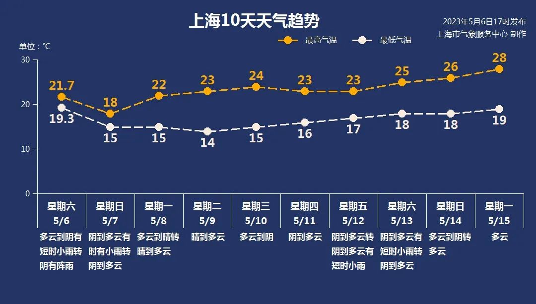 通常立夏期间,冷空气并不甘心退出舞台。今天冷暖气流交汇下,江南华南进入降雨过程最强时段,冷空气推动东侧的雨带南压,上海今天白天大部地区雨水暂歇,气温实打实地降了,全市白天最高大多20~22℃上下,体感变得舒爽。下午云多风起,降水又开始了接力赛,南部率先转短时小雨,预计今天上半夜自西向东转阴有阵雨。