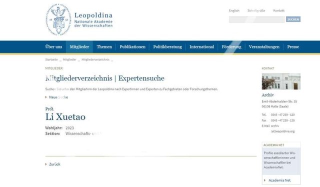 据了解,德国国家科学院源于1652年成立的利奥波第那科学院(Leopoldina),是世界上延续至今的最古老的科学院,也是德国最古老的自然科学和医学方面的联合会。成立371年来,德国国家科学院一直秉承其创始原则,该院根据不同的研究领域共设立了4个学部28个学科组,拥有1500多位院士,包括自然科学、医学、人文和社会科学领域的著名学者。其院士中约有四分之三来自德国本土和其他德语国家(奥地利、瑞士),另外约四分之一来自世界其他国家。李雪涛教授此次当选,被归在第IV学部的“科学史和医学史”(23)学科组。