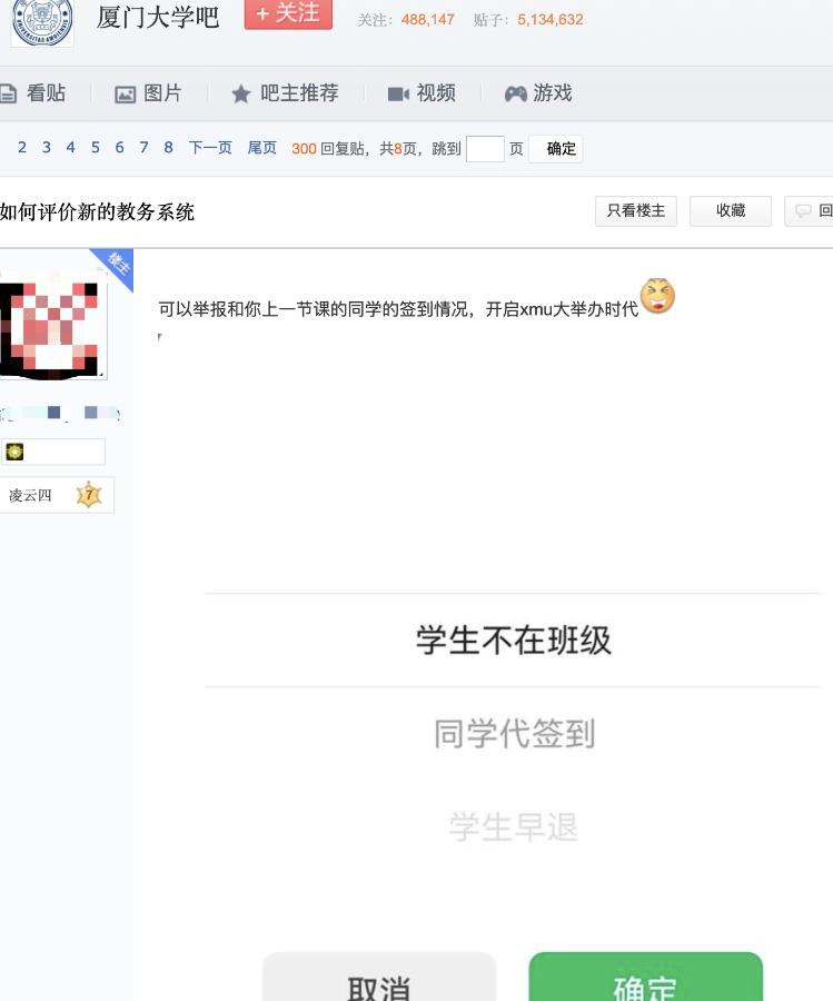 日前,有网友爆料称,在厦门大学新的教务系统,可举报同学的签到情况,引发网友跟帖吐槽。5月8日,厦门大学教务处工作人员告诉海报新闻记者,这一功能是技术开发人员直接设置的,教务处并未安排,已处理关掉。