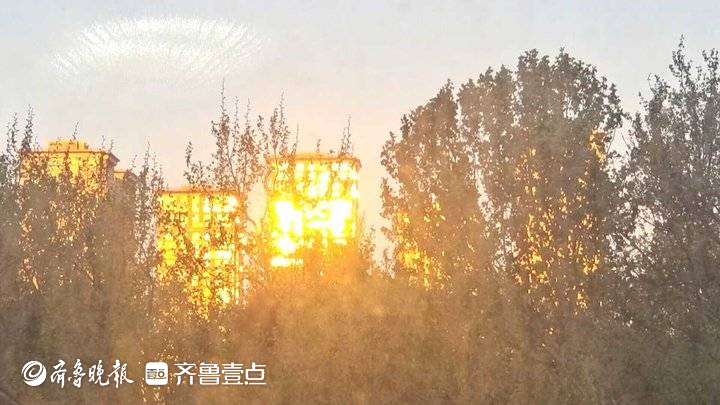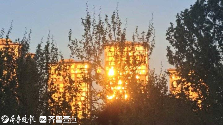 5月8日,济南傍晚夕阳西下时分,文化东路几座高楼的幕墙发出强烈的反光。