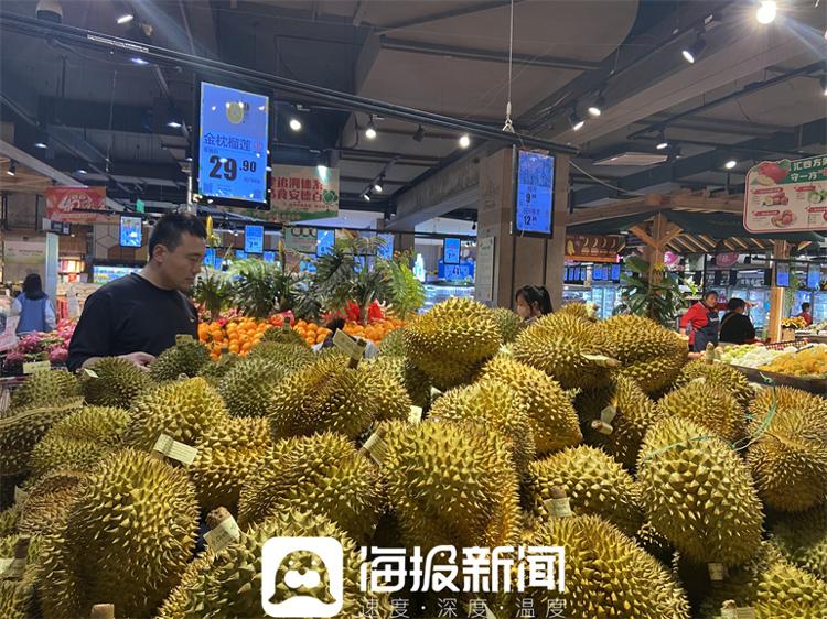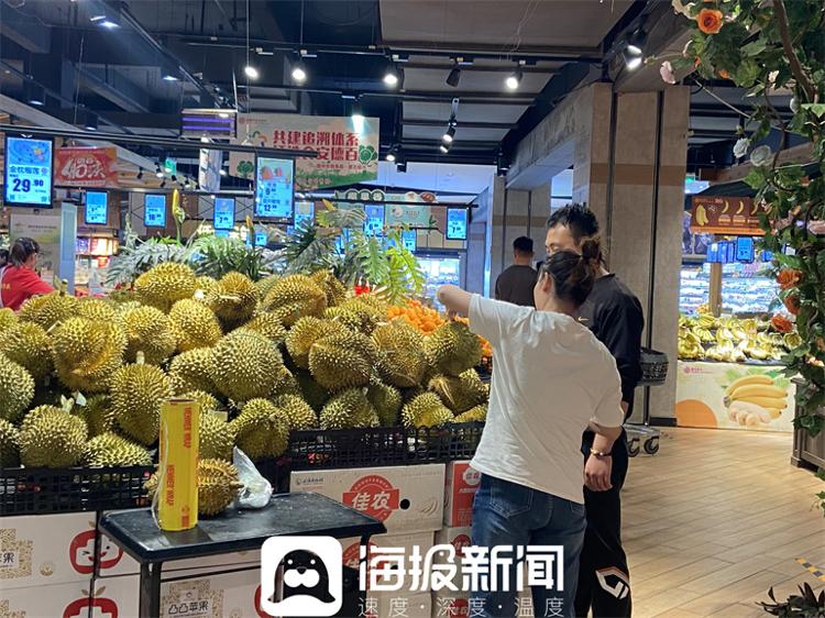 在这家超市里,记者发现,榴莲被摆在了进门最显眼的位置,上面还挂着吸睛的价格标签:金枕榴莲28.9元/斤。一位售货员告诉记者,店内榴莲大多是进口,一般4至7月份是榴莲口感最好的时候,当前随着榴莲供应量的提升,整体的价格较上月同比有所下降,实惠的价格也引来了市民争相购买。