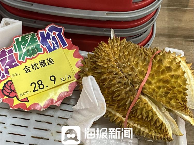 “榴莲最后一个,低价售卖啦……”上午10点半,记者刚走进一家连锁商储超市,便听到了售货员的叫卖声。