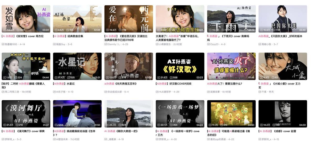 “AI孙燕姿”已有数百首翻唱作品(图源网络)