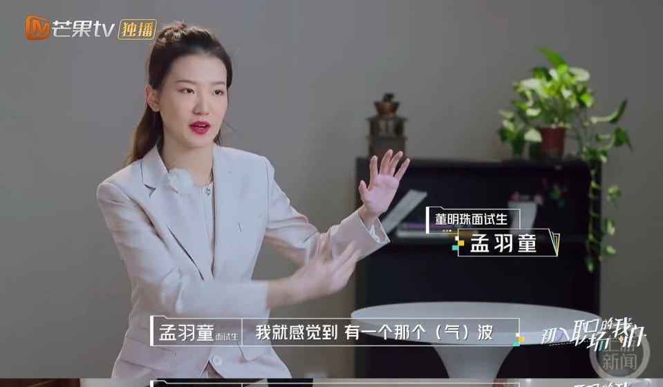 ▲孟羽童在《初入职场的我们》节目中。图片来源/芒果TV视频截图
