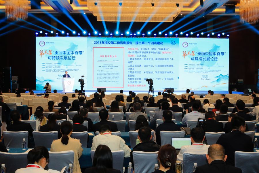 中国科学院院士、联合国教科文组织国际自然与文化遗产空间技术研究中心主任、可持续发展大数据国际研究中心主任郭华东作题为《“美丽中国中脊带”与可持续发展》的主旨报告。郭华东院士围绕“美丽中国中脊带”战略研究、可持续发展议程及SDG中心、中脊带可持续发展目标评估、构建可持续的“美丽中国中脊带”等四个方面,回顾了从“胡焕庸线”到“美丽中国中脊带”的发展过程,介绍了“美丽中国中脊带”的思考与研究进展,展望了中脊带未来区域发展的美好前景,为打造纵贯南北、辐射东西、融合各方的可持续发展示范带提供智力支撑、凝聚思想力量、探索先行模式。