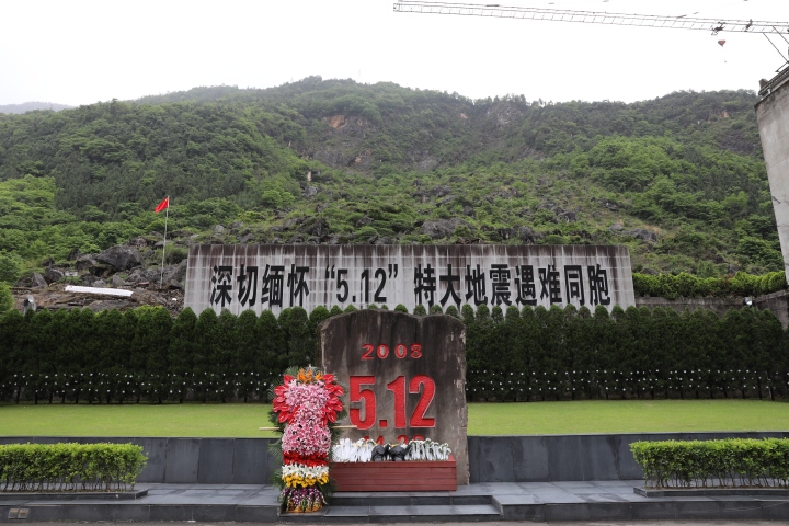 5月10日的飘雨下午,潮新闻记者站在北川老县城地震遗址,广播音响里传来的是《思念曲》婉转低回的小号声,北川中学遗址的废墟前摆满了一束束吊唁的白色菊花。