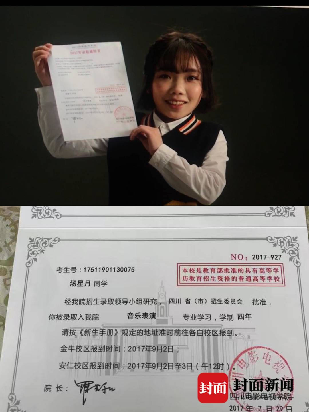 2016年,她参加艺考,但在高考录取时,身高给她带来了不小的阻力。音乐表演专业有一定的身高要求,她曾被好几个学校拒收。后来,她给四川电影电视学校写去了一封信,表达了自己对于音乐的热爱等,校长破格录取了她。