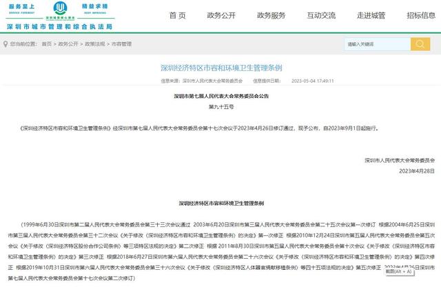 记者注意到,近日修订通过的《深圳经济特区市容和环境卫生管理条例》规定,除划定的摊贩经营场所外,禁止占用城市道路和公共场所堆放物品、摆摊设点、销售商品。