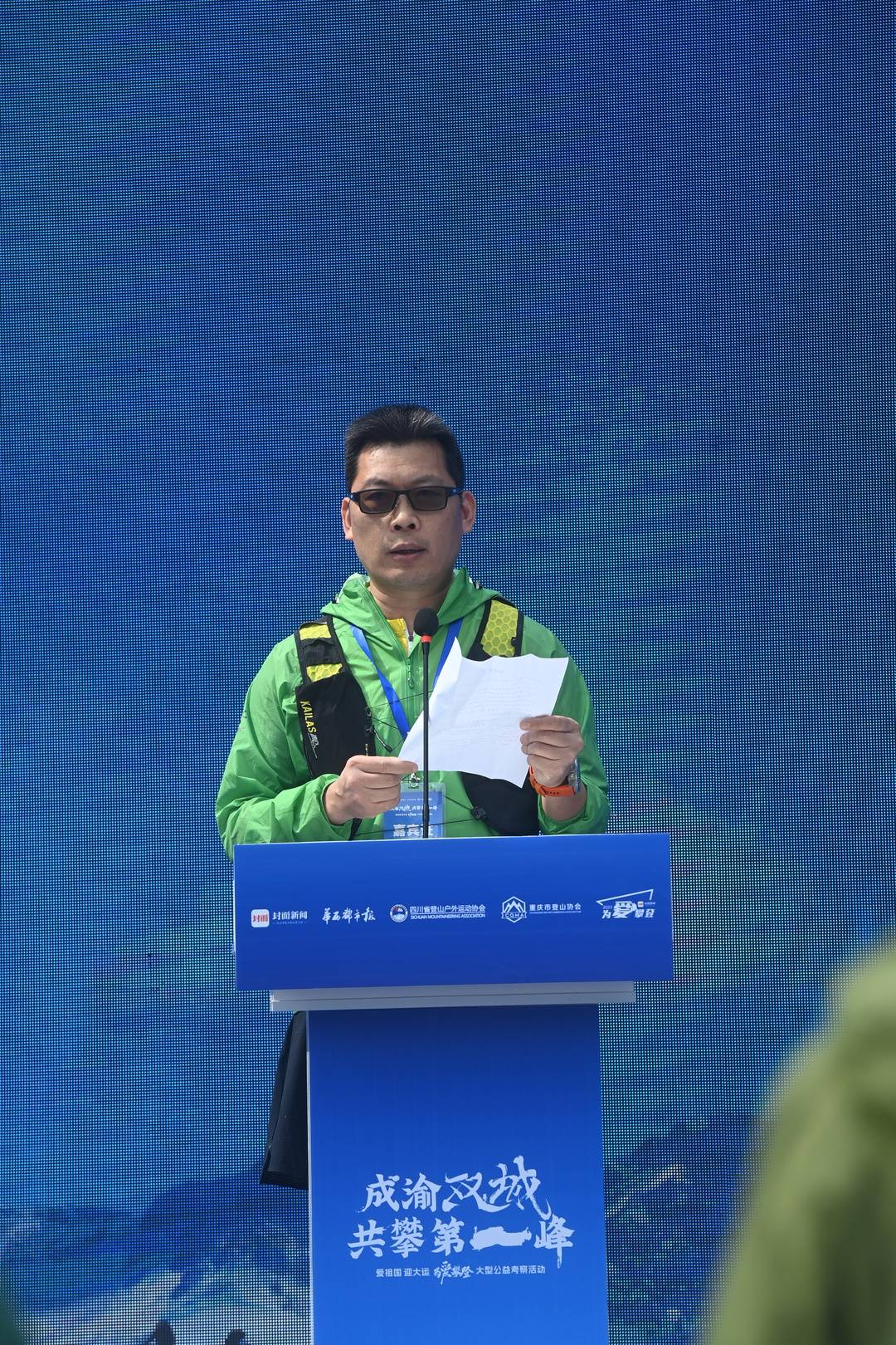 重庆市登山协会副会长李熙康在启动仪式上作了精彩的发言。他说:非常高兴在这“为爱攀登”大型公益活动的十周年之际,来到成都西岭雪山景区。“为爱攀登”,成渝双城,共攀第一峰,这次活动不仅弘扬不畏艰难、不惧挑战、勇于攀登、顽强拼搏的精神,以运动传递爱与温暖,传递自然生态环境保护的意识,更能扎实推进成渝地区双城经济圈建设,加快体育旅游产业高质量融合发展。李熙康在活动上表示,在今年,重庆市登山协会还将攀登重庆第一峰——阴条岭。