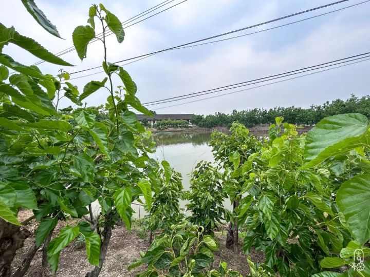 漫步桑基鱼塘间,空气中飘来阵阵桑果清香。塘基上,成排成行的桑树绿意盎然,桑叶吐绿。桑枝上挂满桑果,有的毛茸茸的,鲜嫩得让人怜爱。