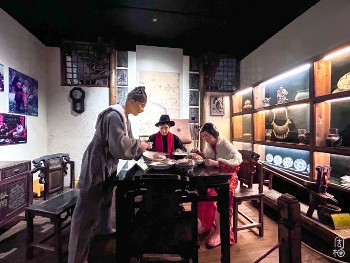 烂糊鳝丝、水乡鱼圆、白扁豆乌金子、生汉肉饼……这些菜谱在博物馆内以一种艺术的文字方式呈现给游客,如果在博物馆内逛饿了,正好能选上一道,走出博物馆就能在荻港渔庄内品尝到了。