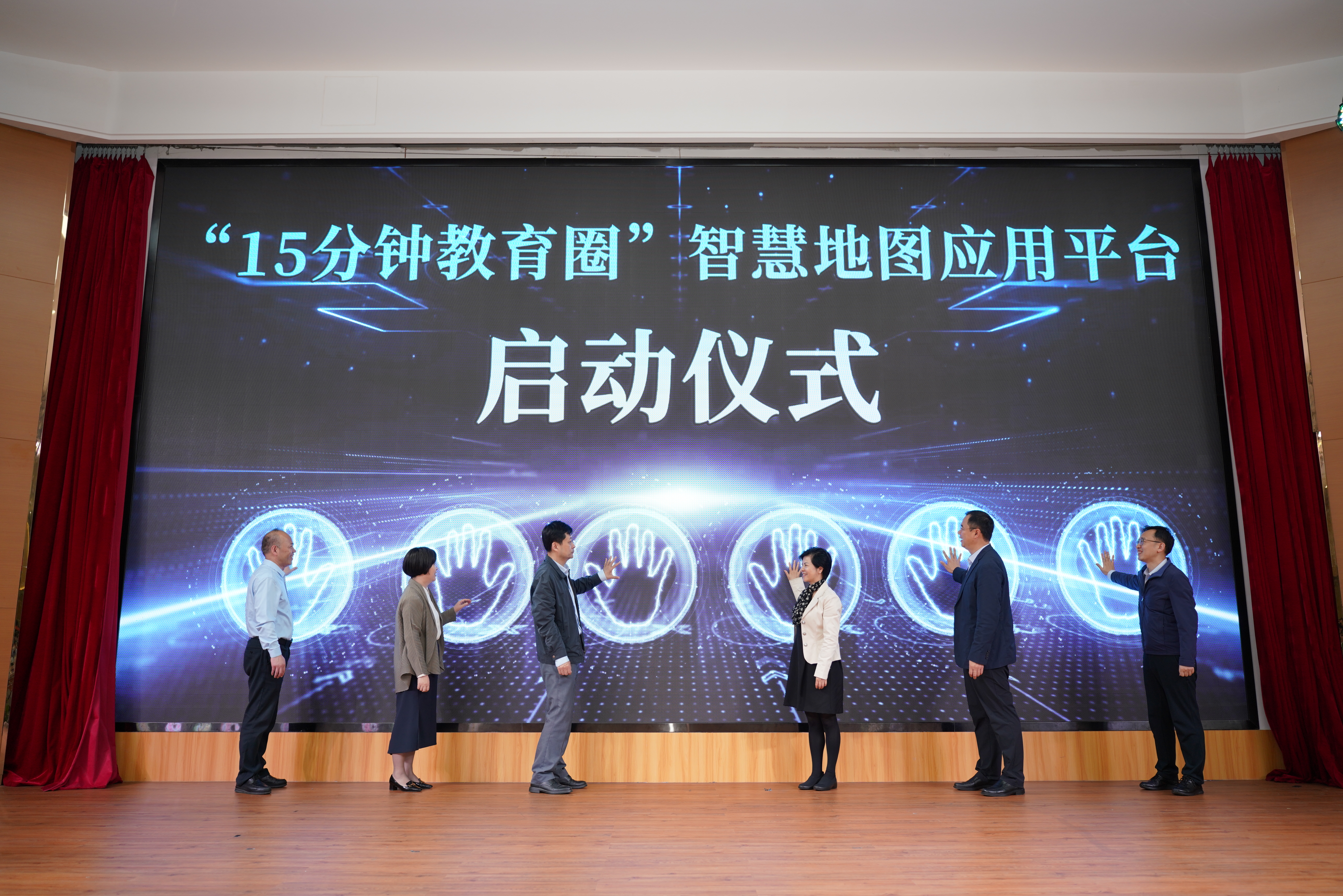 现场,省教育厅副厅长顾月华,南京理工大学党委书记张俊,东南大学副校长孙立涛,玄武区委副书记、区政府党组书记张志超,南京市教育局副局长柴耘,玄武区教育局局长张恒柱共同启动玄武区“课后服务15分钟教育圈”智慧地图应用平台。