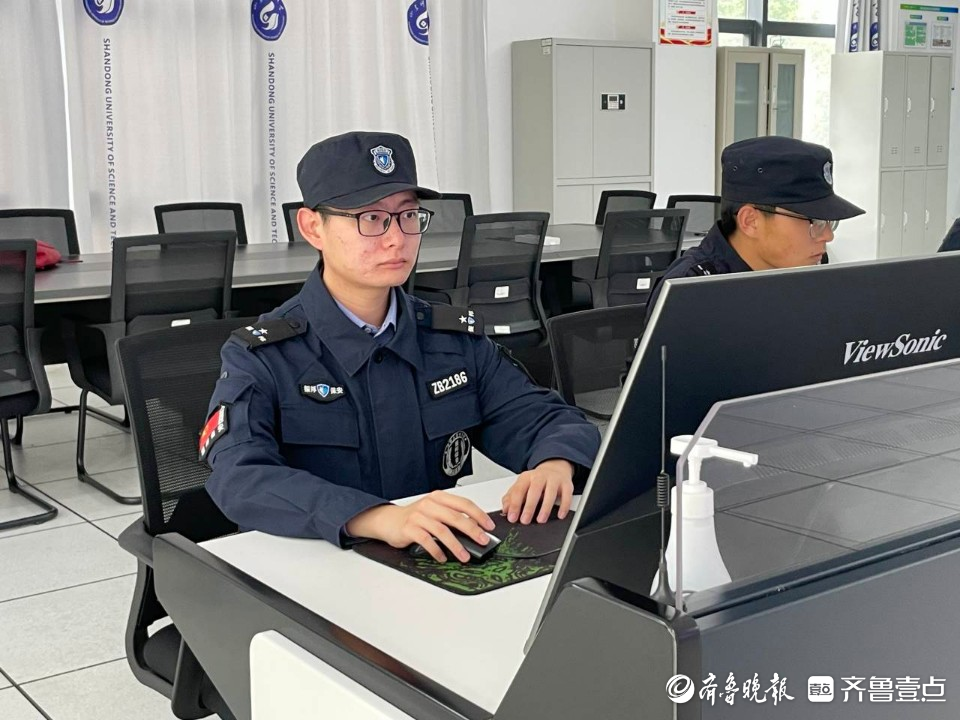 马梓桐今年27岁,2019年毕业于北京信息科技大学国际贸易专业。在来到山东科技大学当保安之前,曾在青岛一家水务股份有限公司工作了两年。“之前也是干的基层岗位,我觉得小岗位上也有很多学问。”2021年9月,马梓桐来到振邦保安公司山东科技大学项目部成为高校的一名保安。