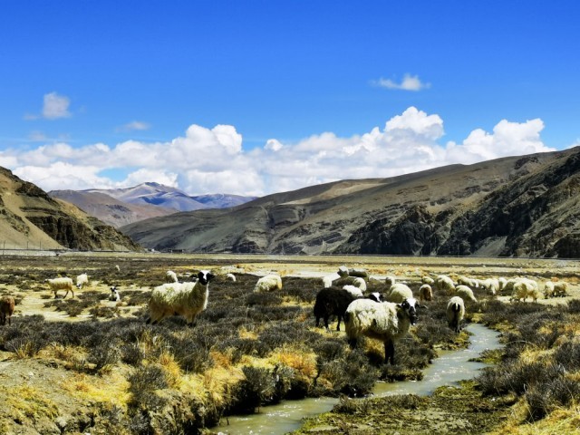 这是珠峰自然保护区中心地带扎西宗乡的羊群。新华社记者沈虹冰摄