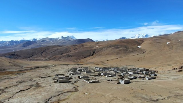 4月23日拍摄的珠峰脚下的日喀则市定日县扎西宗乡藏普村(无人机照片)。新华社记者普布扎西摄