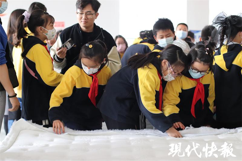 "好梦工程师"课程以"解锁健康睡眠的密码"为大问题,融合科学、数学、美术、语文等学科,实现学校与社区、高校、企业的联动,结合"问题解决五步法",引导学生以"人的需求"为中心,通过团队合作研究,共同设计完成了一款适合小学生睡眠的床垫。现场,学生们讲解了自己参与实践和设计的过程。