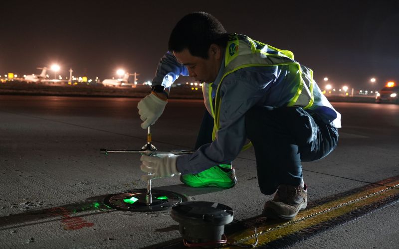 深夜,繁忙的首都机场迎来一天中最安静的时刻,但对于助航灯光保障员来说,此刻才是忙碌的开始,他们要抓住这一空当,更换故障灯具、巡检道面。